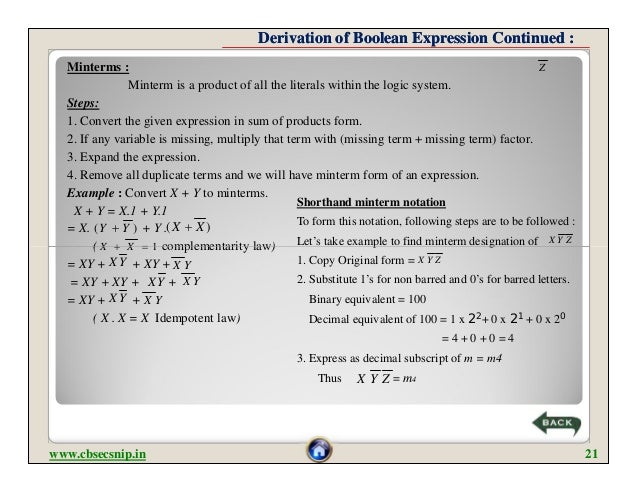 Our teachers have designed these concept notes for the benefit of Grade 12 students. The Boolean algebra rules of the table are essential to understand when these circuits are equivalent and how they may be simpliļ¬ed. Download free printable worksheets Computer Science pdf of CBSE and kendriya vidyalaya.