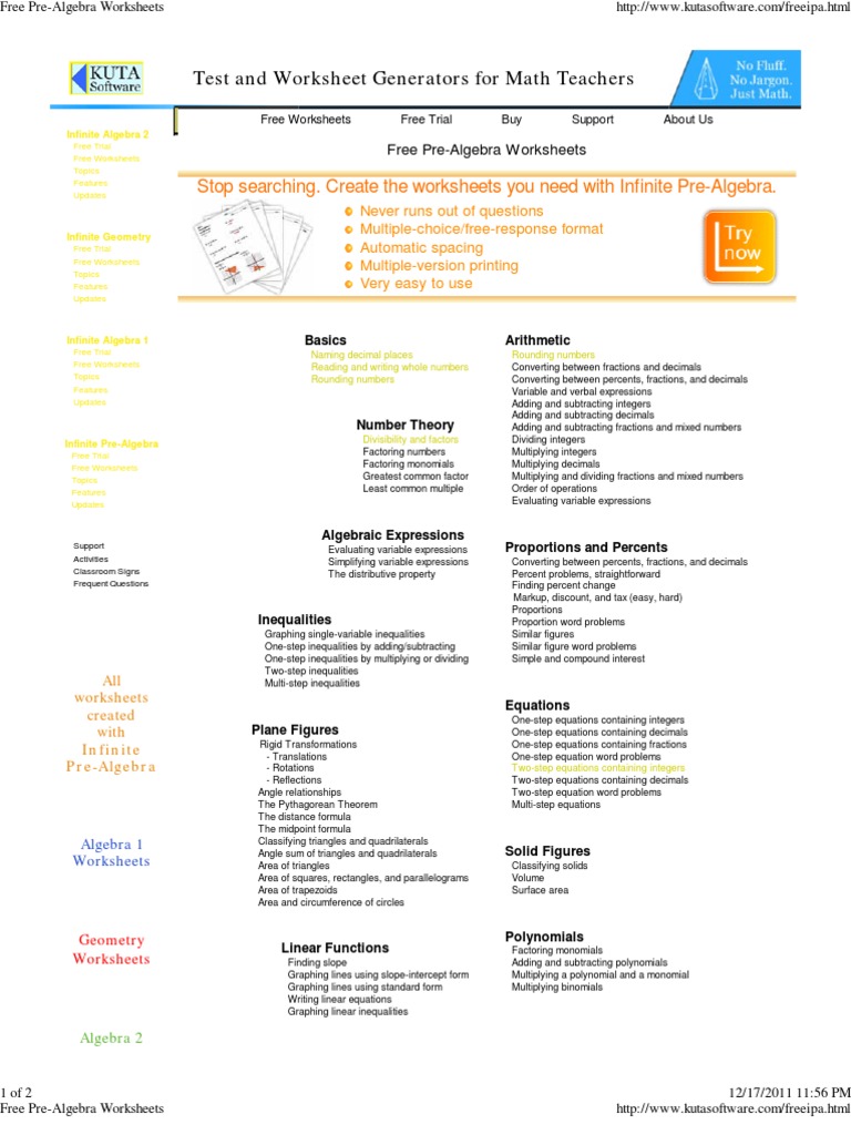Free Pre Algebra Worksheets Pdf Equations Fraction Mathematics