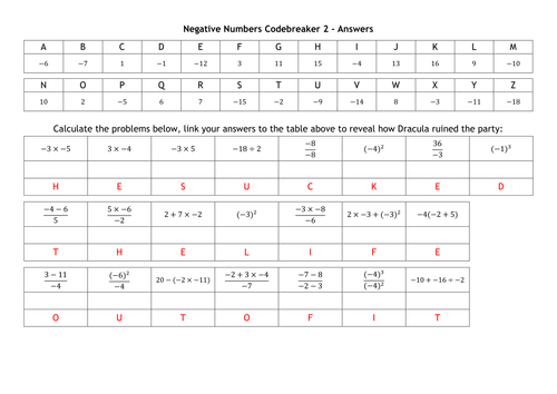 Negative Numbers Codebreakers Teaching Resources